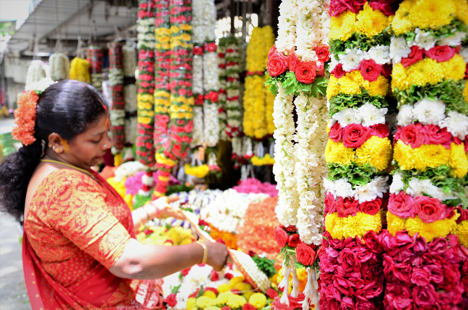 - Flower market: The tour takes us through the traditional market place, brimming with life as flowers are sold close to the temple street. Heady with fragrance, we stop here to capture some pictures before moving onto the next stop.
